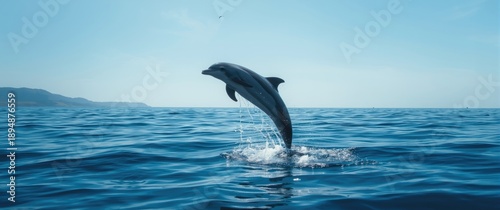 © AkuAku, Fototapeta premium A jumping dolphin above the water surface