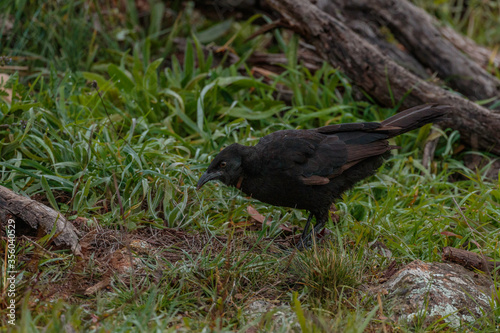 Fototapeta premium A juvenile White-winged Chough looking for food