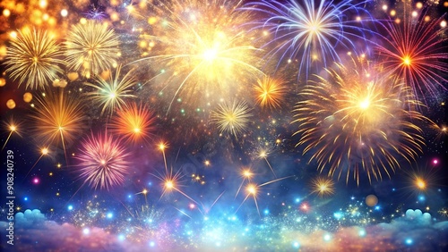 © Sanook, Fototapeta premium 2025: A Kaleidoscope of Light and Wonder with Fireworks and Confetti AI Generated