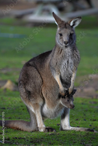 © Katherine, Fototapeta premium A kangaroo and its baby in its pouch
