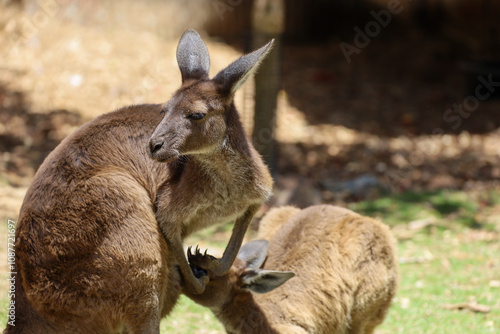 © Romar66, Fototapeta premium A kangaroo mother nursing her baby. Mother feeding joey.