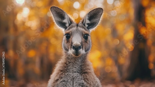 © pengedarseni, Fototapeta premium A Kangaroo Stands Alert on Its Hind Legs, Curiously Surveying Its Environment with Keen Interest.
