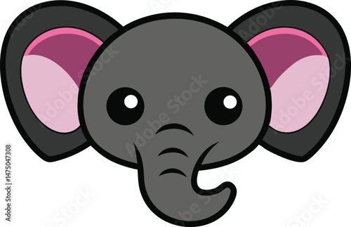 Fototapeta premium A kawaii style elephant head vector silhouette black