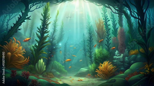 © SUPERARTMAN, Obraz premium a kelp forest environment illustration background