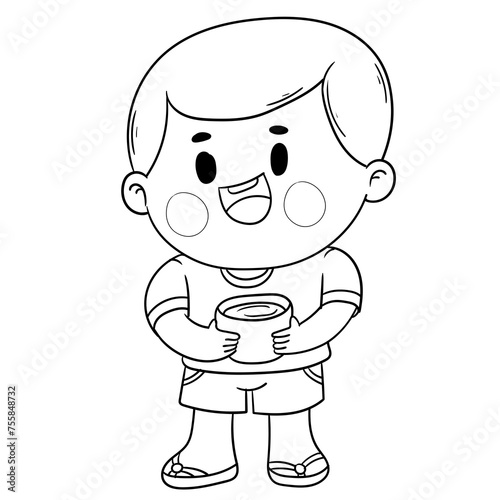 © Panadda, Obraz premium A kid in native costume Playing with water on Songkran day