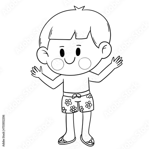 © Panadda, Obraz premium A kid in native costume Playing with water on Songkran day