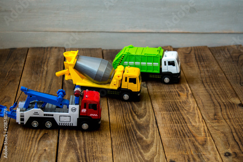 Obraz premium a kids toysa truck concrete mixer and tow truck