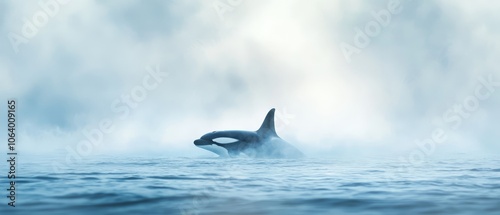 © Wall, Fototapeta premium A killer whale swimming in the ocean under a cloudy sky