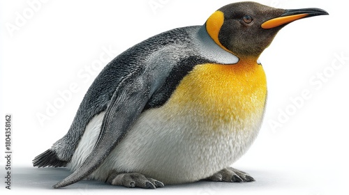 Fototapeta premium A king penguin covered in snow its body is black and white and its neck is...