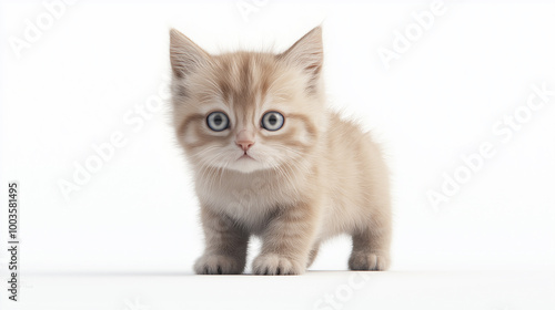 © MONWARA, Obraz premium A kitten is lying on a white surface with its eyes closed