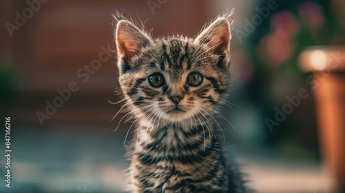 Naklejka premium A kitten that is two months old is seated and gazing at the camera