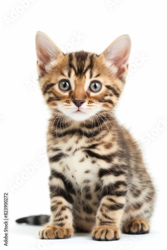 Obraz premium A kitten with a blue eye is sitting on a white background