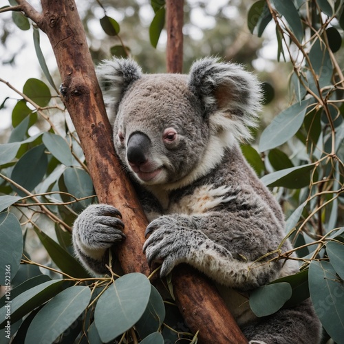 © Kashif, Obraz premium A koala bear sleeping on a eucalyptus branch.