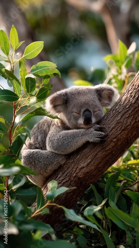 © Naiuang, Fototapeta premium A koala resting on a sturdy eucalyptus branch