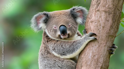 Obraz premium A koala resting on a tree, showcasing its cute features.
