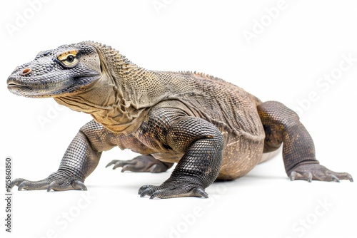 © Jennie Pavl, Obraz premium A komodo dragon lurks in the undergrowth, waiting to pounce on its unsuspecting prey. The dense foliage provides the perfect camouflage for the stealthy predator.