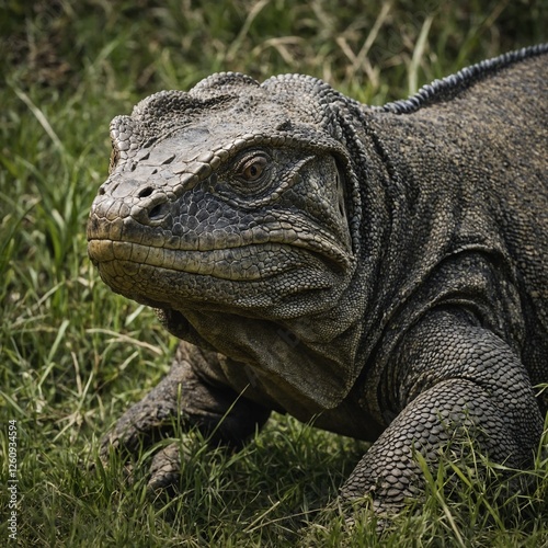 Obraz premium A Komodo dragon prowling through the grass.