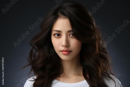 Fototapeta premium A Korean girl, 20 years old, beautiful, delicate makeup, portrait, front,...
