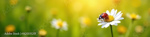 Fototapeta premium A ladybug rests on a daisy in a sun-drenched field , pretty, summer