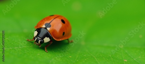 Obraz premium A ladybug sits upon a green leaf