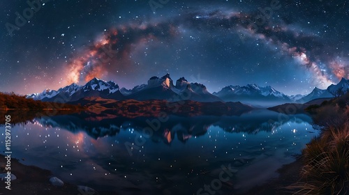 © Bushra, Naklejka premium A lake is a large body of water surrounded by land, often formed naturally through glacial activity, tectonic shifts, or volcanic eruptions. Lakes come in various sizes and depths, ranging from small