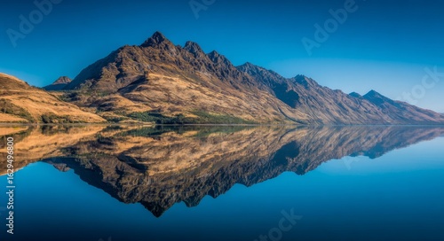 © MKS, Obraz premium A lake, mountain, and mountains are part of a serene lake and mountain landscape