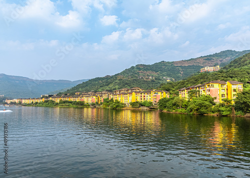 © YK, Obraz premium A Lake Side view of Lavasa City