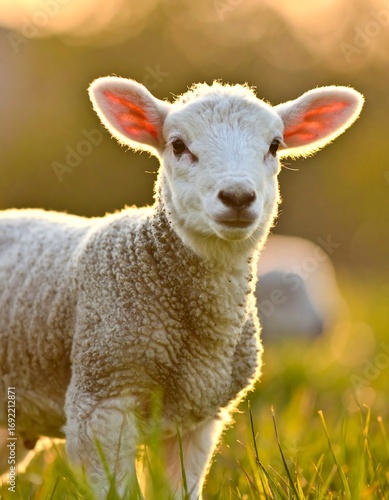 © Jihad, Fototapeta premium A lamb in a field at sunrise