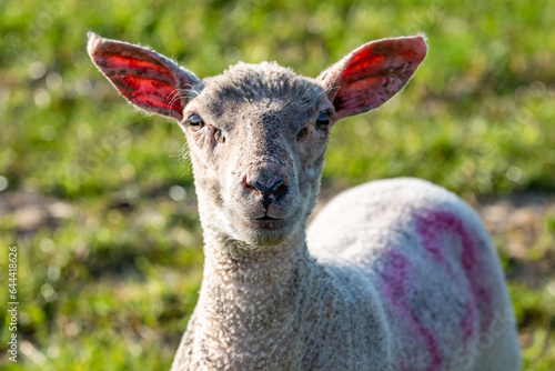 © lemanieh, Fototapeta premium A lamb staring at the camera with a shallow depth of field