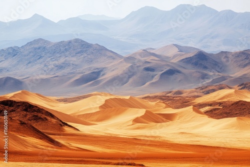 Naklejka premium A landscape image of a desert with mountains in the distance, suitable for...