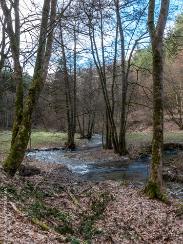 Fototapeta premium A landscape in late fall with a little creek that wiggles around some trees...