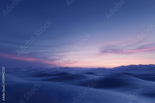 Obraz premium A landscape with rolling hills under a blue and pink sky at dusk with distant...