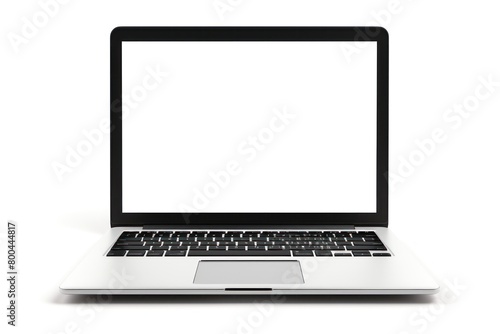 © Nico, Fototapeta premium A laptop with a black keyboard and a white screen. The laptop is open and ready to be used