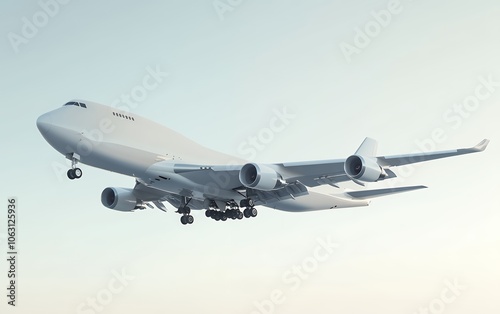 © Volodymyr, Obraz premium A large airplane in flight against a clear sky, offering copy space for text or branding
