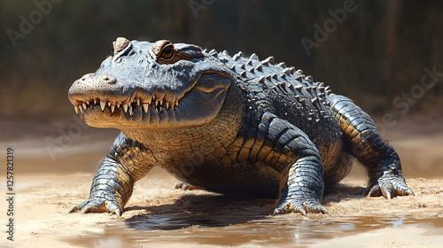© 민 오, Obraz premium a large alligator is sitting in the water