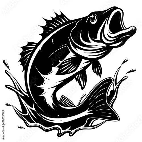 Fototapeta premium A large bass fish, fish, vector, tattoo, illustration, animal, tribal, sea,...
