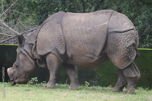 © nayeem, Fototapeta premium A large black rhinoceros in Arignar Anna Zoologycal Park