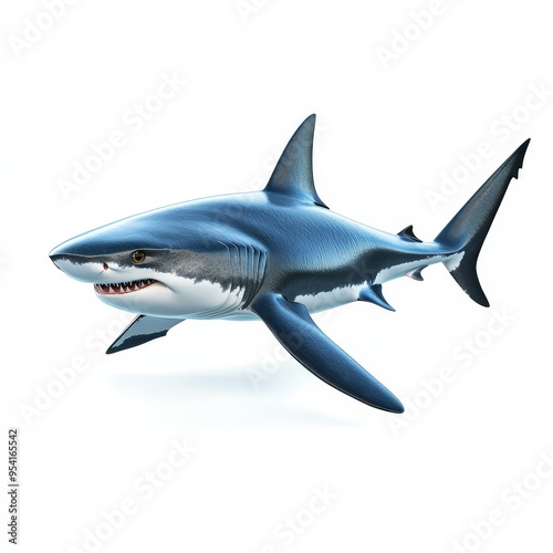 © TheosArtTavern, Obraz premium A large blue and white shark is swimming in the ocean