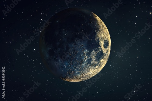 © shobakhul, Obraz premium A large blue moon is in the sky with many stars surrounding it, generative ai image