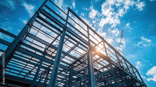 © fajar, Fototapeta premium A large building under construction with a crane in the background