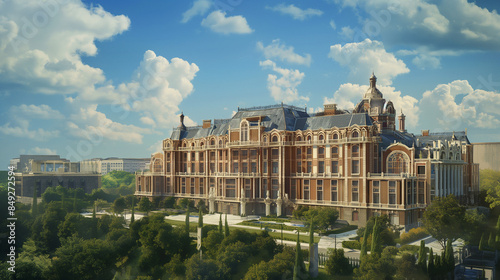 Naklejka premium a large building with a lot of windows and a sky background with a few clouds...