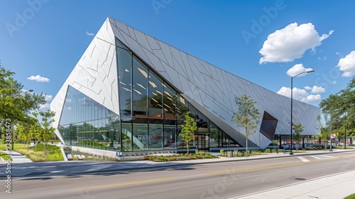 Obraz premium A large building with a white facade and a triangular shape
