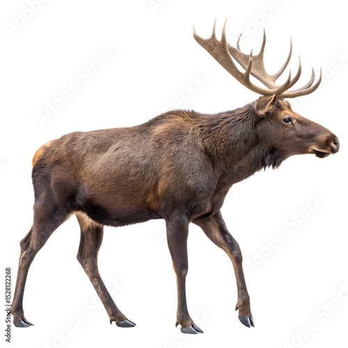 Obraz premium A large bull moose showing its impressive antlers isolated on a transparent background