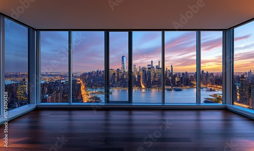© TheoTheWizard, Fototapeta premium A large city view from a high floor with a view of the city