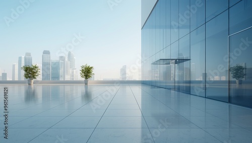 Fototapeta premium A large city with a glass building by AI generated image