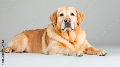 © Luluraschi, Obraz premium a large dog resting in a studio, showcasing its obesity