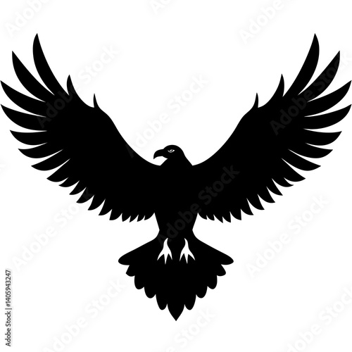 © Suplab_Designer, Fototapeta premium A large eagle spreading its wings before taking flight silhouette isolated on white background