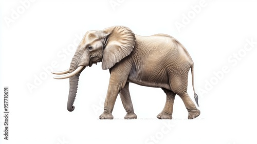 © Space Priest, Fototapeta premium A large elephant is walking across a white background