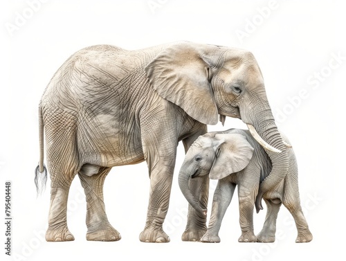 © Pornarun, Fototapeta premium A large elephant stands next to a small elephant