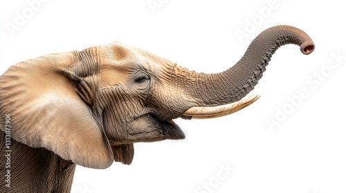 © Mrammon, Obraz premium A large elephant with its trunk up and mouth open